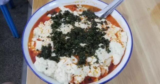 鲜红的辣椒油托举着一撮碧绿的香椿浮在白嫩嫩的豆花之上,真是赏心悦目。香椿的清香、辣椒的鲜香、豆腐花的浓香,扑面而来,直往鼻孔里钻,令人垂涎欲滴。
