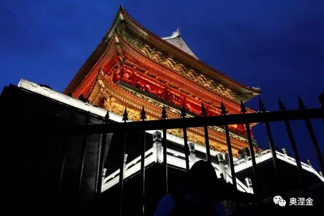 ”晚上去钟鼓楼,就在回民街前面。等我们在回民街吃完东西过去的时候,它已经关了!我们看了一下,8点半就关了。“