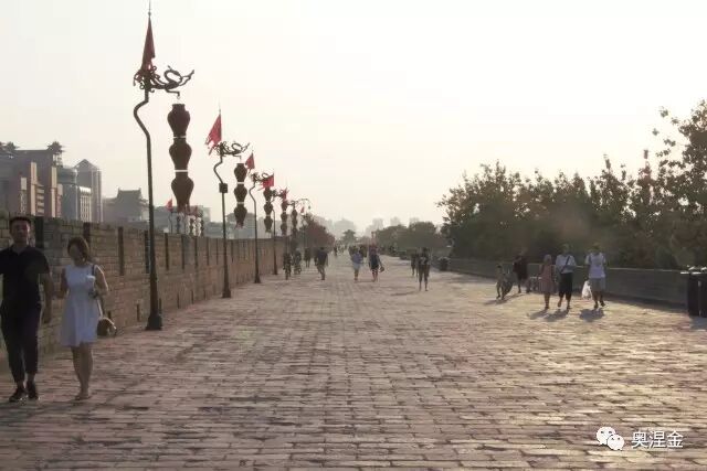 “傍晚去了城墙古城墙(明城墙),它有四个门,长乐门(东),永宁门(南),安定门(西),安远门(北),合称长安永定。导游后来说,我们从南门上市正确的,因为古时有客远来,就是在南门举行的迎宾礼。我们没租自行车,也没逛完。”