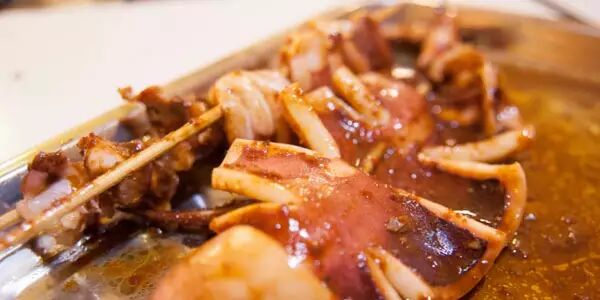 青岛很有名的烧烤店了,烧烤种类繁多,还有海鲜,上菜速度挺快。烤鱿鱼超大一盘,酱料放得足足的,吃起来很过瘾;烤脆骨和鸡心也不错,还有特色的辣炒蛤蜊。