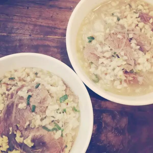 同于羊肉泡,异于羊肉泡,同者均为掰馍,异者一为羊肉,一为猪肉,猪肉又仅限于肠子。