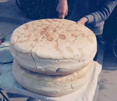 关中八怪之一:烙馍像锅盖。盖为平面,盔为凸形,且硬,敲之嘭嘭,如石如铁。一年,有少年从外婆家携锅盔回,中途下冰雹,皆蛋大,砸死许多鸡羊,少年头顶锅盔,有安全帽之功能,行十里路,身无伤损,馍无破裂。