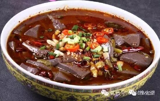 清晨,或是傍晚,食摊安在小巷街头,摆设十分简单,一个木架,架子上是各类碗盏,分别放在盐、酱、醋、蒜水、油泼辣子、香油。木架旁是一火炉,炉上有锅,水开而不翻滚,锅里煮的是切成小方块的羊血。羊血捞在碗里,并无许多汤,加各类调料便可下口了:羊血鲜嫩汤味辣、呛、咸,花椒、小茴香味窜扑鼻。