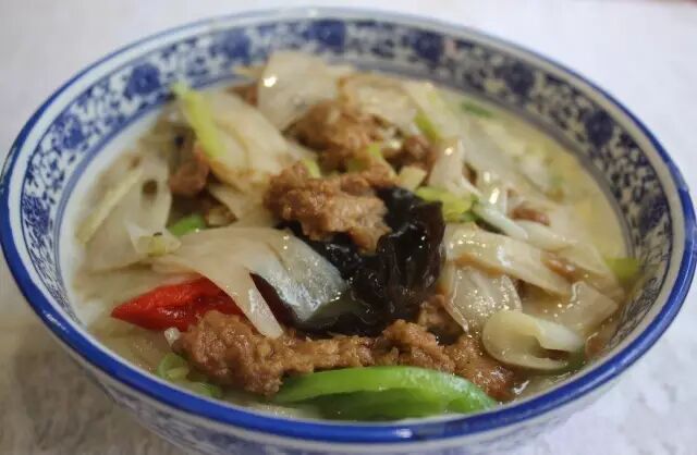 水盆大肉其实和水盆羊肉差不多,只是主材不同,适合不喜欢吃羊肉的人吃,肥瘦相间的肉片和鲜浓的肉汤,配上饼一起,泡或不泡都好吃。