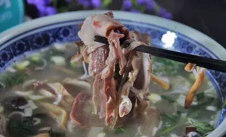 先吃夹馍后喝汤,已经很少有人知道,杂肝汤其实是早点,一碗杂肝汤端上来,还会捎带一个月牙饼,把饼掰开捞出汤里的杂肝夹在馍里,一边吃肉夹馍,一边喝汤。记住别加醋,杂肝汤泡馍不及前两种油脂那么大,再加醋把香味都“盖住了”。