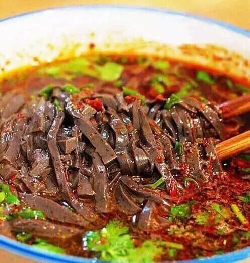 羊血较之羊肉泡馍、水盆羊肉便宜,以前是很多苦力者果腹的大餐(一般都碗大如盆),羊血泡馍是辣子涮羊血的变化之一,其最大的特点就是“辣”可以称得上是泡馍系列最辣的,一般人不敢吃。吃完就像洗了一遍桑拿一样。羊血泡馍 ,想吃的过瘾,馍掰要大。 还得准备餐纸或毛巾擦汗,再打开一瓶冰峰汽水。