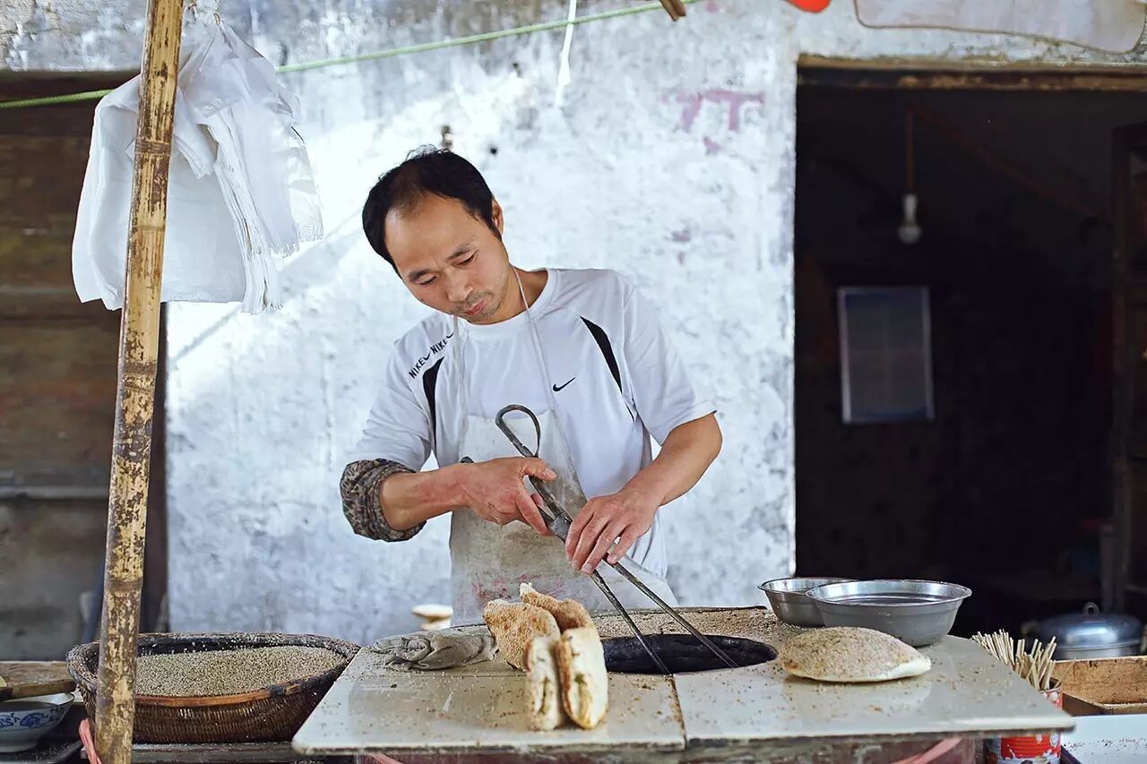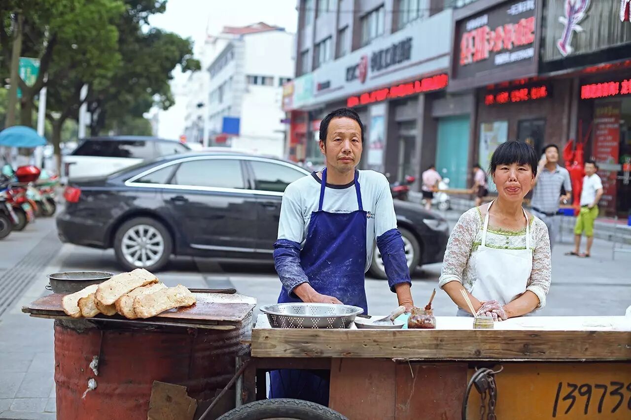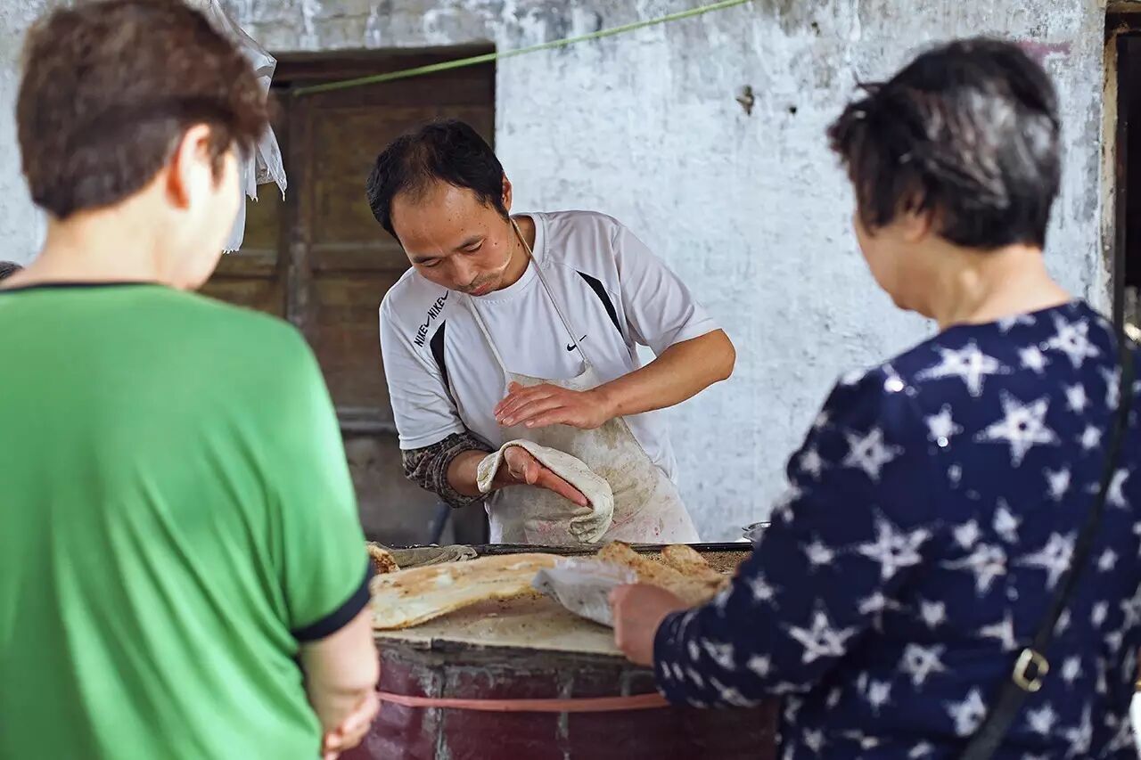 做锅盔的一般都是夫妻档,这斑驳的炉壁和好像也写满了古老的恋情。在天门的大小街道,车站,各个角落里都会有很多这样历经风雨的锅盔摊,在路边温暖了每一个匆忙的行人。