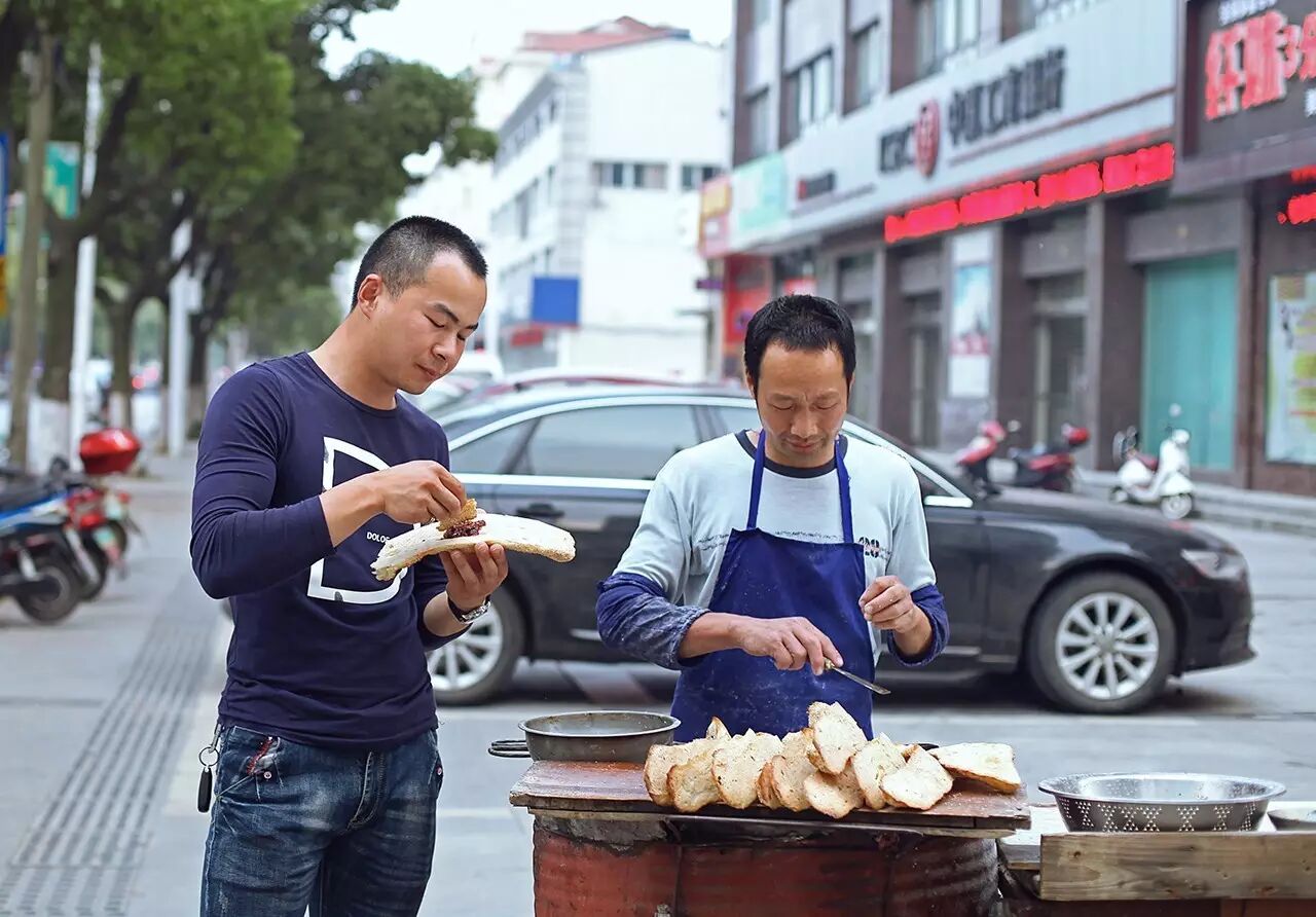 在天门总是能看到这样一幅景象:公交车上,豪车里,繁华的街头,市井的路边,人人都拿着各种形状的锅盔在吃。