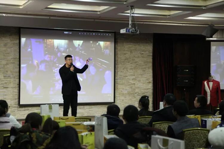 芳华科技美颜中心的王经理给大家介绍美颜服务项目,现场集赞前三名获得价值1500元VIP活动体验卡一张