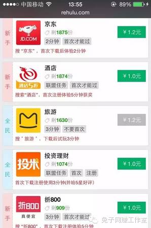 然后就可以去下载应用做任务赚钱了,下面是部分任务列表图:
