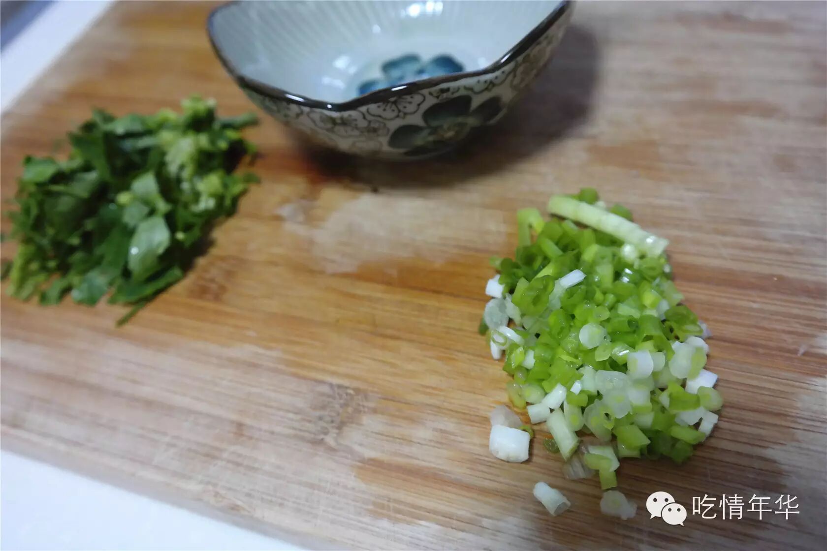 2、香葱、香菜切碎备用。