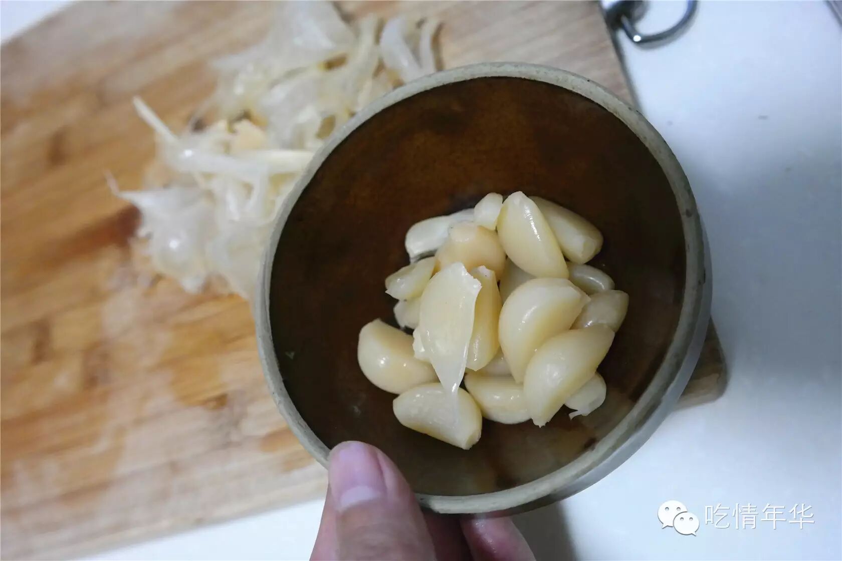 3、糖蒜剥好备用。