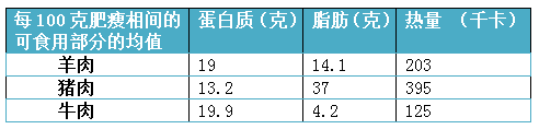 猪牛羊肉的营养比较。数据来自:www.zou114.com