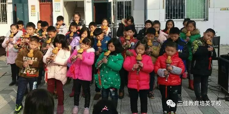 为了让农村孩子享受和城市孩子一样的教育,培英学校自2016年秋期把葫芦丝引进课堂后,部分学生参加了葫芦丝的培训学习,大部分孩子基础较好,手型正确,气息较稳,有一定的识谱和吹奏能力,在期末参加了汇报演出,达到了出人意料的效果。
