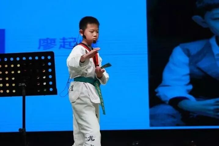 选手廖起峰,精彩的跆拳道表演流利的英文朗读,你真棒!