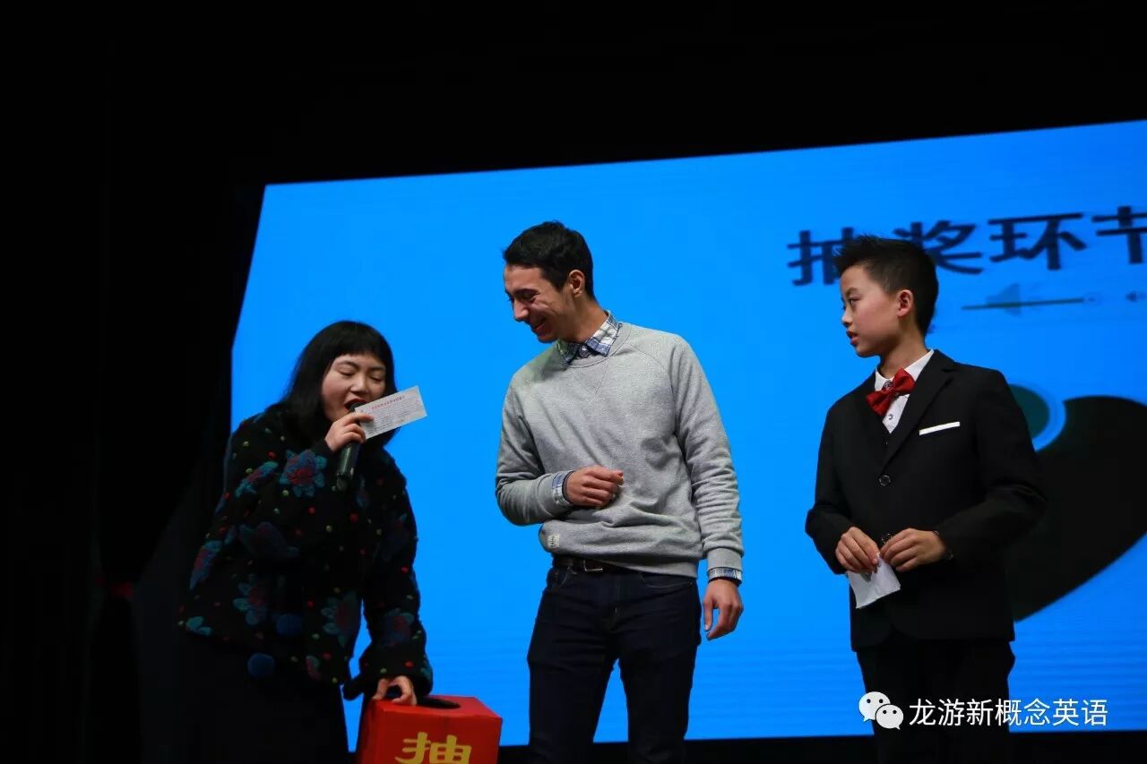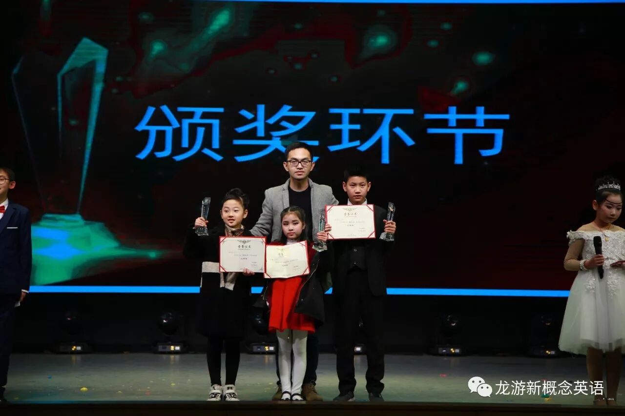 龙游新概念英语罗校长给三等奖选手柳钰宸、洪可馨、程亦奇颁奖