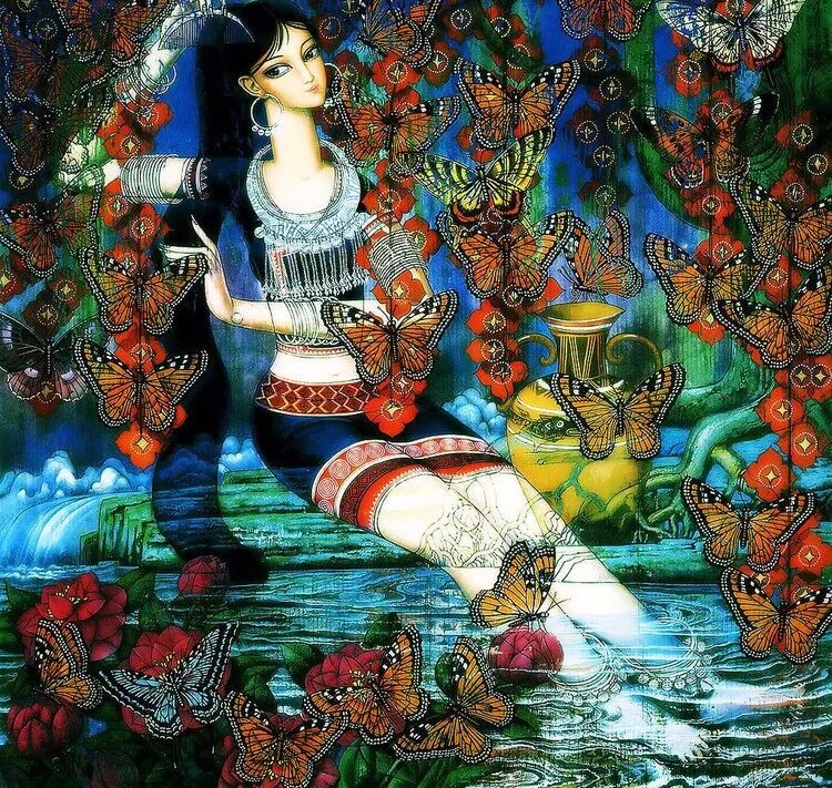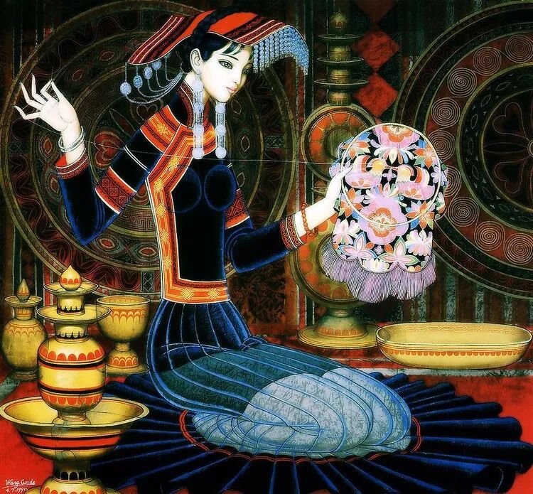 佛祖给葫芦装上了管子,年轻人吹出了美妙的乐声,顿时风平浪静,鲜花盛开,祝愿这对情侣吉祥幸福,从此葫芦丝在傣族人家世代相传。