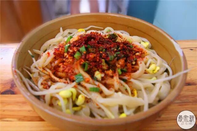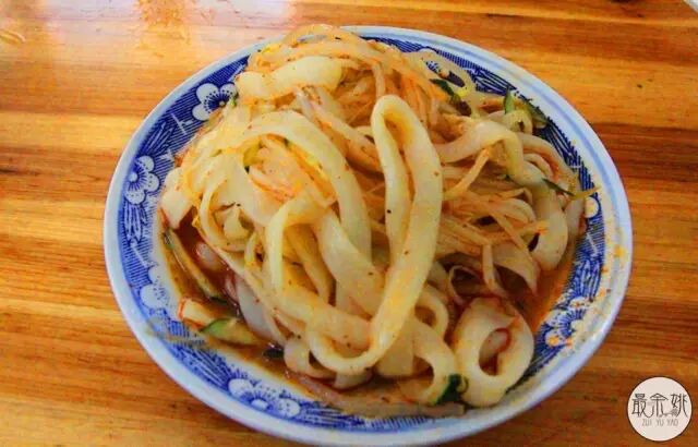 油泼棍棍面又称拉条子,老板娘妈妈纯手工制作的,嚼劲十足,拉条子在新疆一代也很流行,我们现在在吃的大盘鸡就是这个演变而来,有一个说法是山西的商人吧这种面点带了过去,其实就是加各种蔬菜肉类拌在一起的拌面,但就是没有店家做的好吃,能做手工面,很了不起啊!