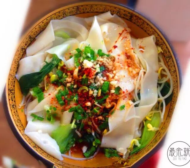 抱歉实再没找到这个字,只有图片,造这个字的也是高手,不过这都不重要,面好吃就好了。 biangbiang面又叫裤带面,其实比裤袋还要宽,店家纯手工制作的,另外不要抱怨这面怎么那么宽,嘴都不够大啊!嘿,我们要的就是特色啊!面条是真心好吃哦,很有嚼劲啦!