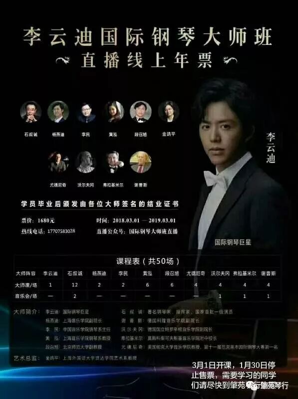 李云迪国际钢琴大师班(直播线上年票)肇庆地区唯一授权售票平台