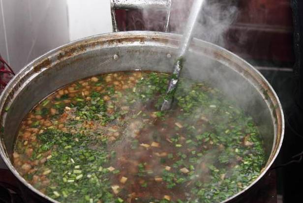 臊子汤一般用肉汤,烧开后里面下上过油的豆腐丁什么的,再勾芡,注意,一定要勾芡,这是不同于其他臊子的地方,然后倒进炒好的臊子头,这里面有肉丁、黄花、木耳、胡萝卜等,最后撒上菠菜、韭菜等浮菜,这样臊子就做好了。这种臊子讲究的是下有沉底的,中有悬浮的,上有漂浮的,盛到碗里,晶莹透亮,香气扑鼻。看似简单,但一般人还真的做不来,这种臊子色香味形俱佳,看着赏目,吃着爽口,好多人不吃面,专喝臊子。许多外地人喝过灞桥臊子汤后,大都和河南胡辣汤感觉差不多。灞桥的臊子汤里会勾粉芡,外地人可能会觉得不中看,但是只有当地人才懂这碗面条的真正含义。