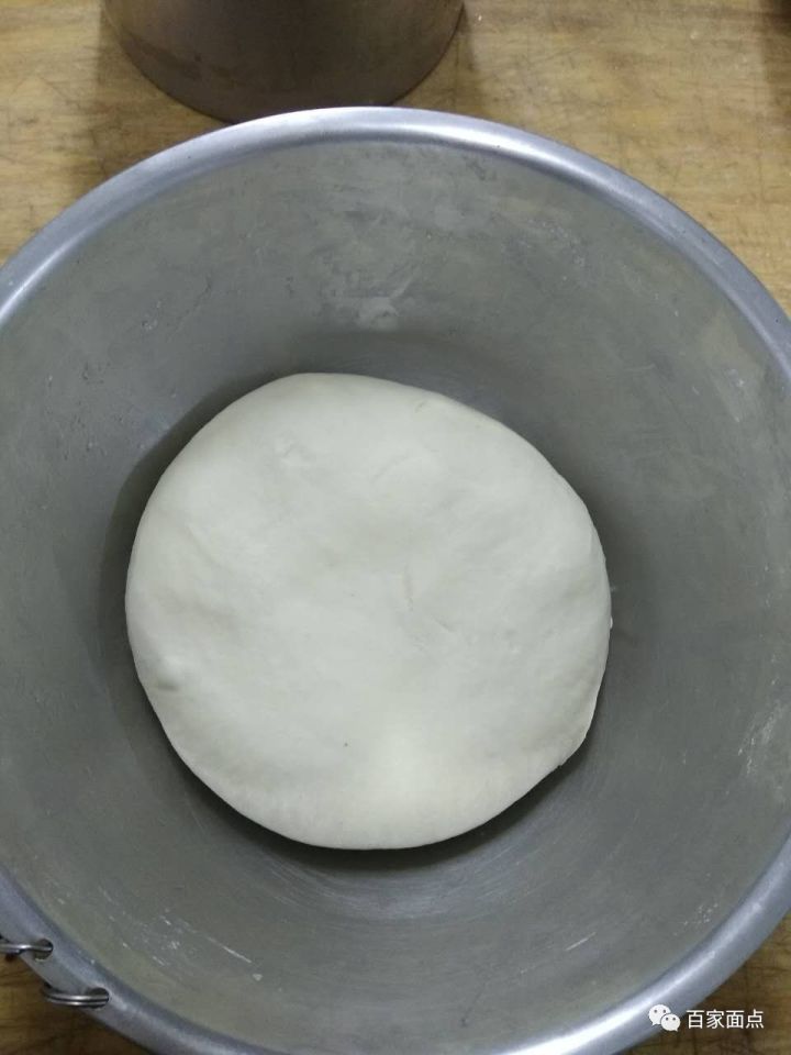 面粉放在盆里,加入适量食盐(主要是为熟饼的盐味),用温水和成面团。
