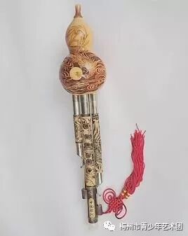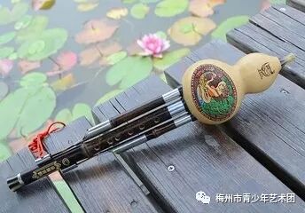 在民族乐器大家族中,葫芦丝具有特殊的个性和普及意义。它是由天然葫芦、三根装有铜质的竹管构成,葫芦是盛放气的音箱,中间主管上开有七个音孔,整体看上去像一个“吉”字。它不像笛子或者箫一样练很长时间还可能吹不响,而且因为音域相对较窄,音高固定,从低音3到中音6总共11度音,指法比较简单,所以孩子学习时容易上手,也不用担心难听扰邻。