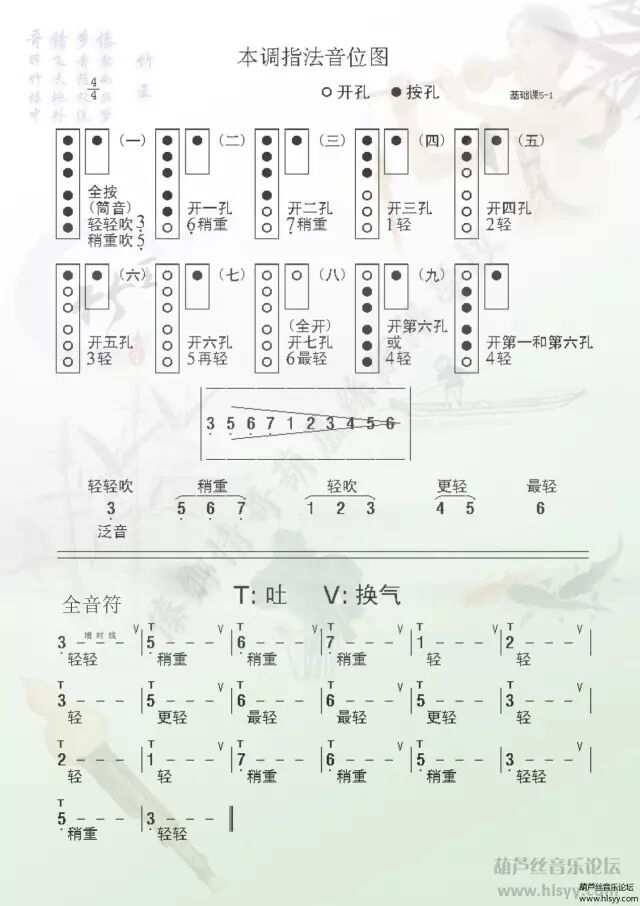 扇指音,是指在该音上的手指上下迅速扇动,使这个音发出如微波颤动式的特殊音色。这是傣族民间固有的特殊演奏方法,可用于《竹林深处》,代替指震音那部分效果很好。记得听过一次《芦萧情》,好象也是用此技巧演奏的。严格地说,扇指音不是指震音,在演奏扇指音时,也可以利用手指在本音孔旁大约五分之一处,上下、快速、均匀、连续开闭形成一种音波,同样也会收到很好的演奏效果,建议大家采用。指震音也叫虚指颤音或隔孔打音,顾名思义,不是扇动本音孔,是在本音的下二孔,平稳扇动,如果吹奏“3”音时就用右手食指扇动“1”音孔,吹奏“5”时用左手无名指扇动“2”音孔,吹奏“6”时用左手中指扇动“3”音孔。但它们所产生的效果有些相似。