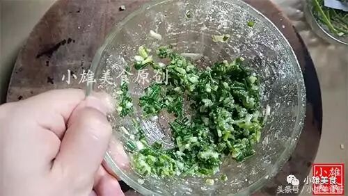 4、葱花切成末装到碗里,加入适量的面粉,食用油,少量的食盐,胡椒粉,搅拌均匀做成酥油。