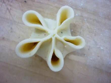 用拇指和食指捏出花边,形成5个叶片。把叶片底部向上拉起和相邻的叶子在中间相粘