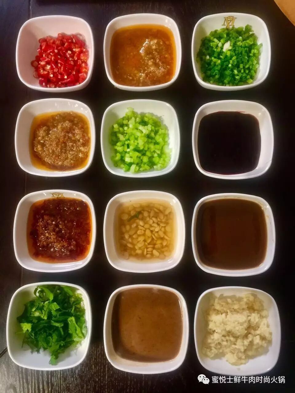 其搭配的酱料也是丰富多姿,与锅底配合的天衣无缝。