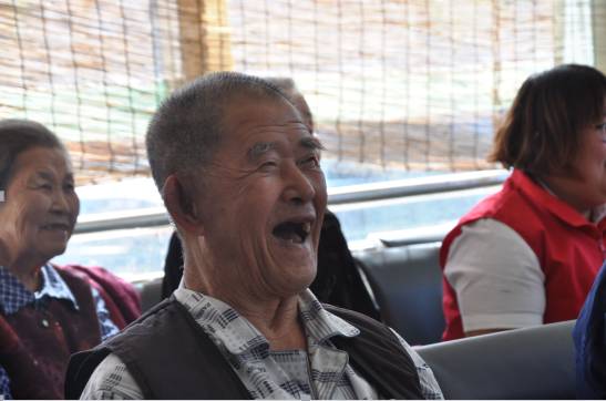 2015年重阳节前夕,我和星火义工走进张课家敬老院为老人们演节目包饺子;当时老人们的看演出表情令我难忘,我立刻用镜头记录了老人们看演出的神采。老人高兴了自己也来一段“相当初------”赢得大家的热烈掌声。