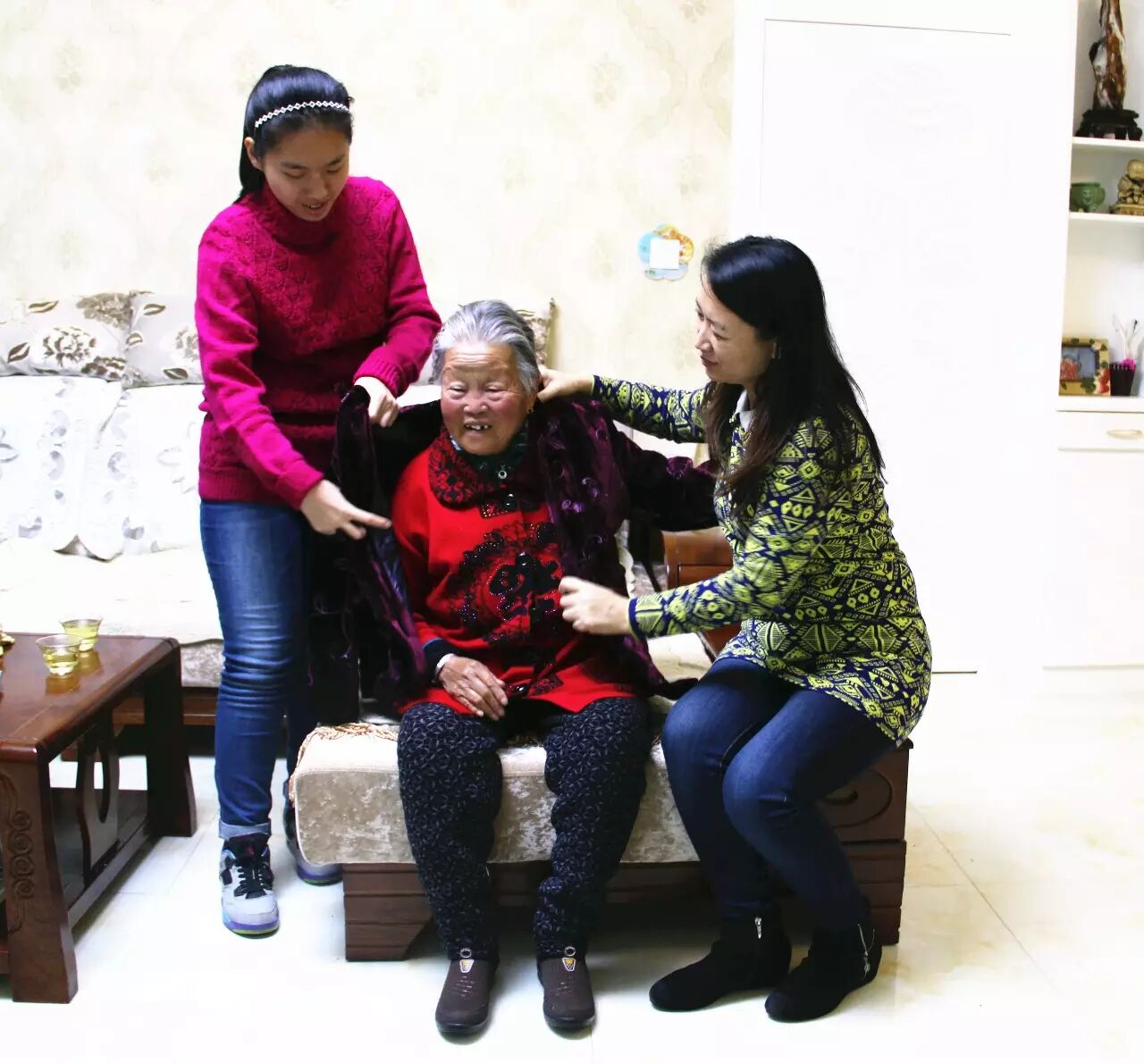 我可是冻的感冒了,可婆婆看见新鞋新衣服哈哈笑,我的女儿外孙女也忙着给奶奶、老奶奶穿上棉鞋棉袄,老人暖和了,祖孙四代人幸福地甜甜地暖暖地笑了。