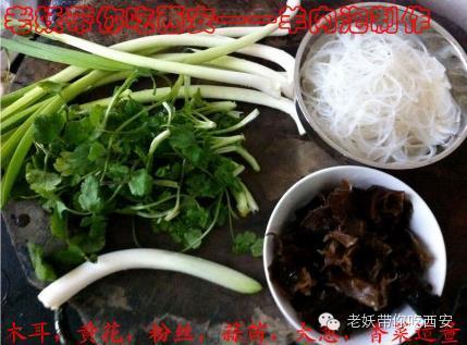 木耳,黄花,粉丝,蒜苗,大葱,香菜适量