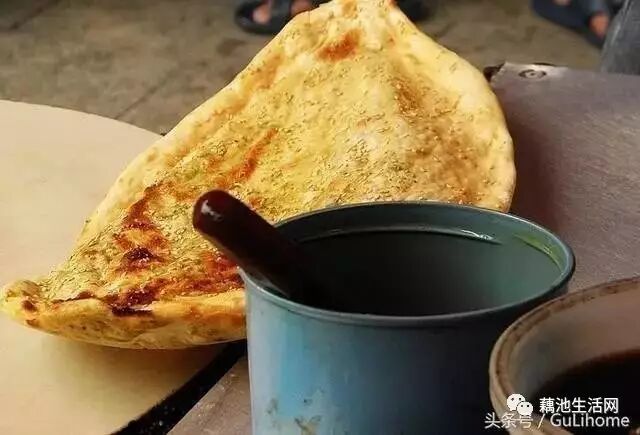 锅盔的历史来源悠久,外观有点像宁夏少数民族的囊,不过其味道和厚度都符合物产丰富的湖北特色。
