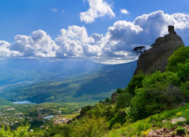 凤冠山是典型的丹霞地貌,她就像一绝美盆景惊艳了世人。林木葱郁、鸟语花香,犹如“蓬莱仙境”。从山上俯瞰,溪流、小寨、森林等千姿百态。