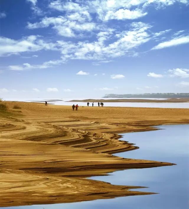 三峡大坝建成,斩断长江天堑,下游江水平稳回落,在风和浪水的作用下,董市沙洲呈现出多种神妙沙浪奇观。