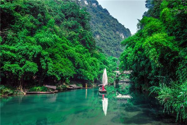 景阳河其实是清江的上游,清澈透底,就像是一条浅绿色的纱带蜿蜒在群山之间,格外漂亮美丽。