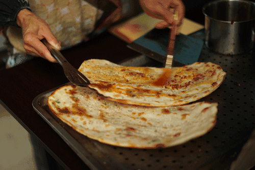「在随州总是在不经意的街头巷尾,就能发现一个锅盔摊,」而到了到了文峰西街,它就是一家不大不小的店面,不会担心因为下雨天而不出摊。老板是正宗荆州人,做了多年的锅盔生意。