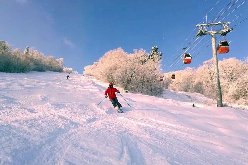 坐上缆车,在亚布力的暖阳和晨雾中登上巅峰。
