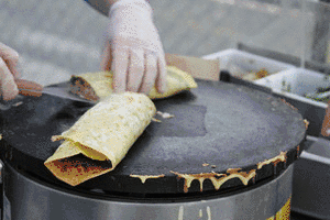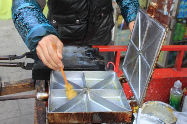 正宗煎饼果子中选用的食材只有绿豆面、油条或薄脆以及葱花、芝麻及其他佐料。我们现在在煎饼里加火腿、肉松、里脊等各种各样的辅料,虽被老板说都是煎饼果子,却早就不是正宗的煎饼果子啦。