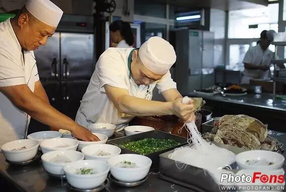 掰好的馍,按食客要求的种类标记好,由服务员放到后厨,配上牛或羊肉。配上滑爽的粉丝,民间说法,粉丝有吃的时候带出汤里的香气作用。