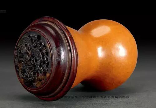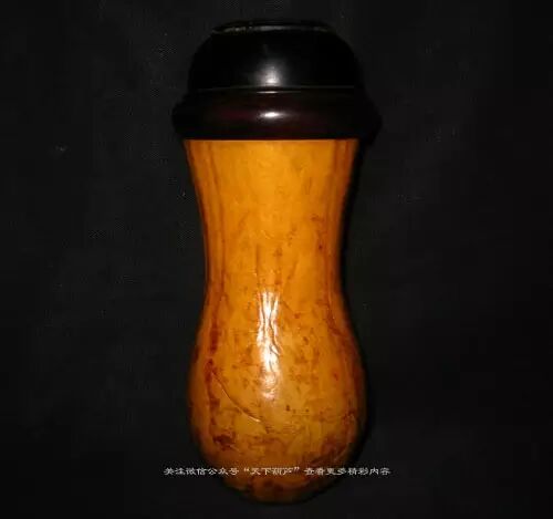 此把葫芦三停均当,翻,脖,肚均美,大小适中掌中之物,色如蒸栗,乃是传世李六爷之极品也。