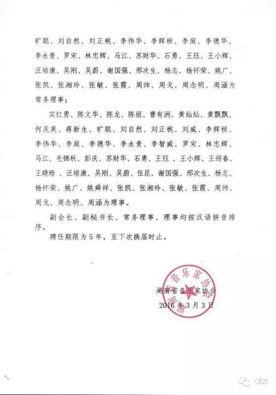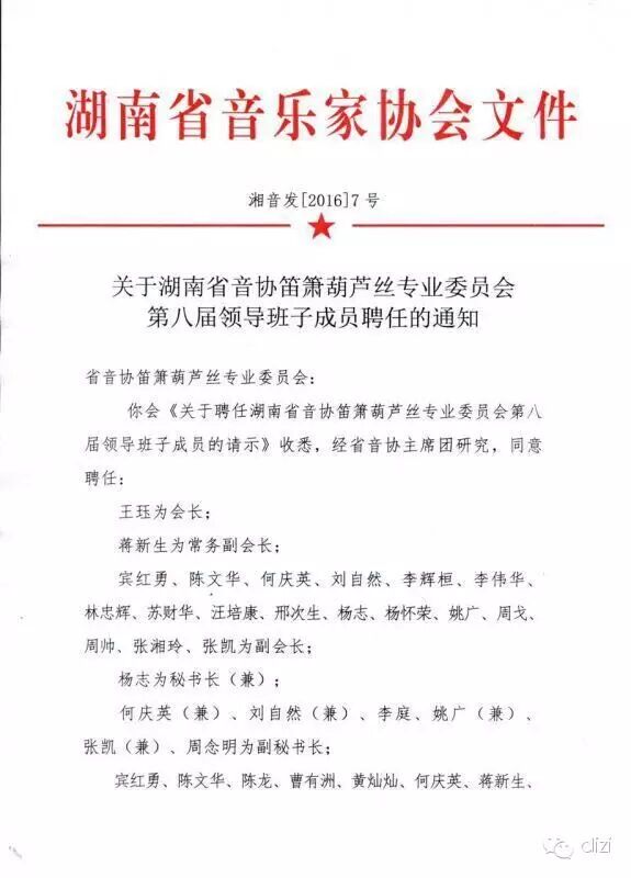 湖南省音乐家协会笛箫葫芦丝专业委员会第八届领导班子成员于2016年3月正式更新,名单公布。