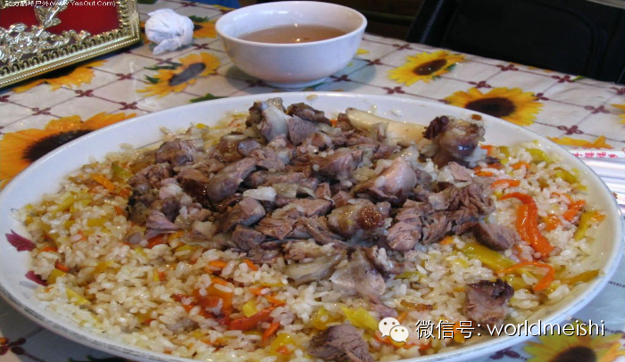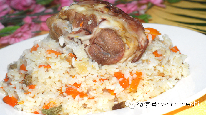原料:大米1500克 羊肉1000克 胡萝卜1000克 洋葱150克 精盐、孜然、菜籽油、羊尾油各适量