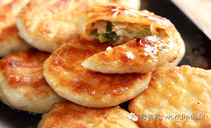 4、平底锅放少许油加热,放入馅饼后两面稍煎,然后放入少量水,加盖小火焖一会儿,注意翻面。待两面金黄时就可以吃了!