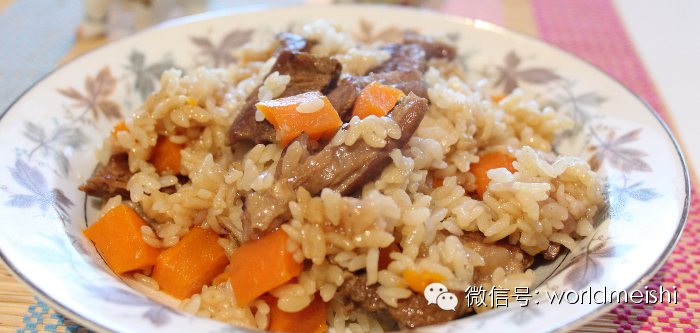 制法:1、大米淘洗净,再用清水浸泡至无硬心;羊肉洗净成块;胡萝卜切成丝;洋葱去皮切碎。均备用。