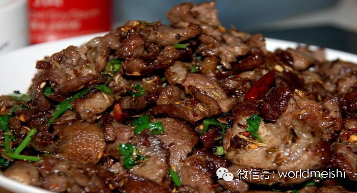 制法:1、洗净羊肝切成一寸五分的小块,在开水中煮六成熟捞出。2、油入锅烧至六成热加辣椒、花椒、盐、葱、炸出香味捞出。将调料渣捣碎待用。3、将肝块倒入油锅内,加酱油和少量水,煮半小时后起锅。另勾芡汁,将汤调好。4、将肝块切成薄片入盘,浇汤汁,放葱丝、香菜、蒜片、芝麻即可。 特点:脆嫩鲜美,麻辣可口。