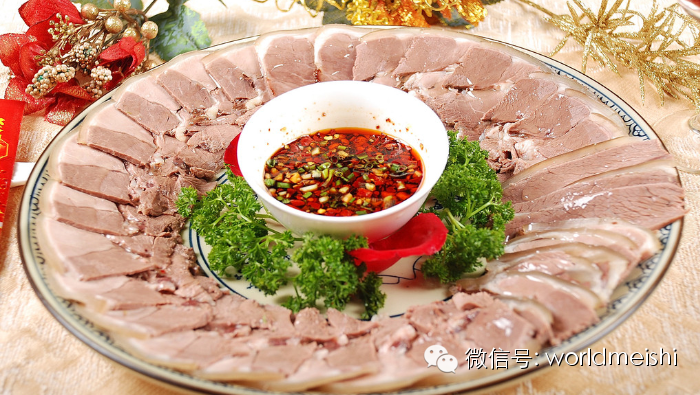 白切羊肉的特色:蘸酱油食用,口味微咸而酥鲜