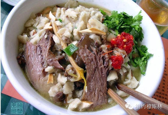 无论在路上如何心急火燎的紧赶慢赶,从高速公路来,坐喷汽式飞机来,但进了洋肉泡馍店,你就必须按照古老的时间,慢下来,而且越慢呢,你那碗羊肉泡馍才越吃得到位。先是要去把手洗干净,然后坐下来,品口茶,再细细地把馍掰碎,约莫一刻钟,才由伙计把掰好的碎馍收去,有时十多分钟,再端回,这才是吃的时候。如果急着吃,把馍掰得大块大块的,还是吃不稳,也勉强吃吧,后来发现再热的羊肉汤也泡不软,咬到核心,还是夹生。